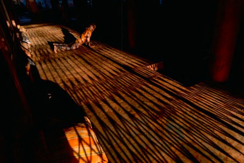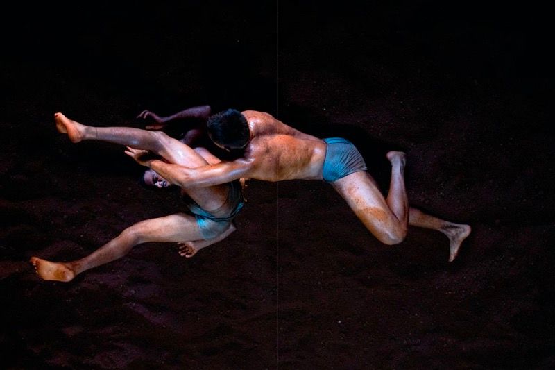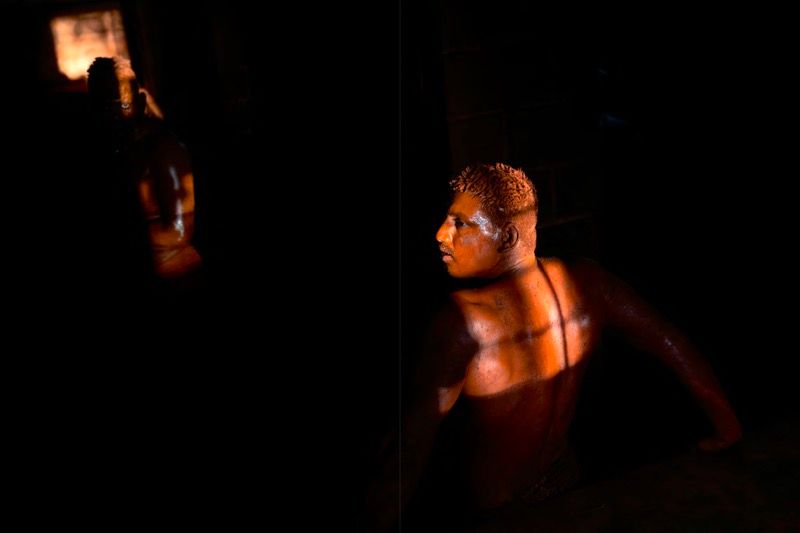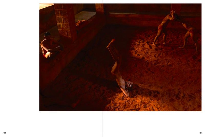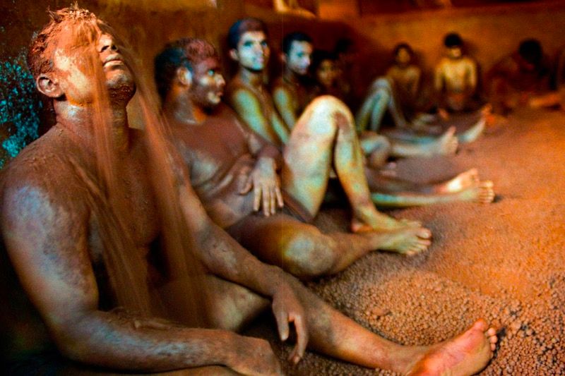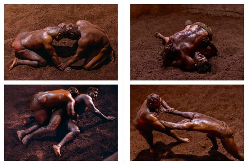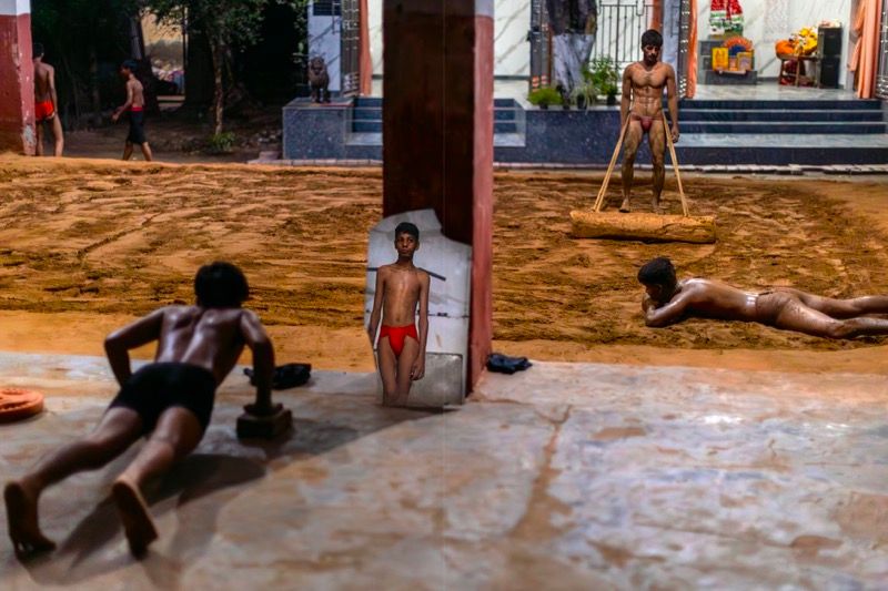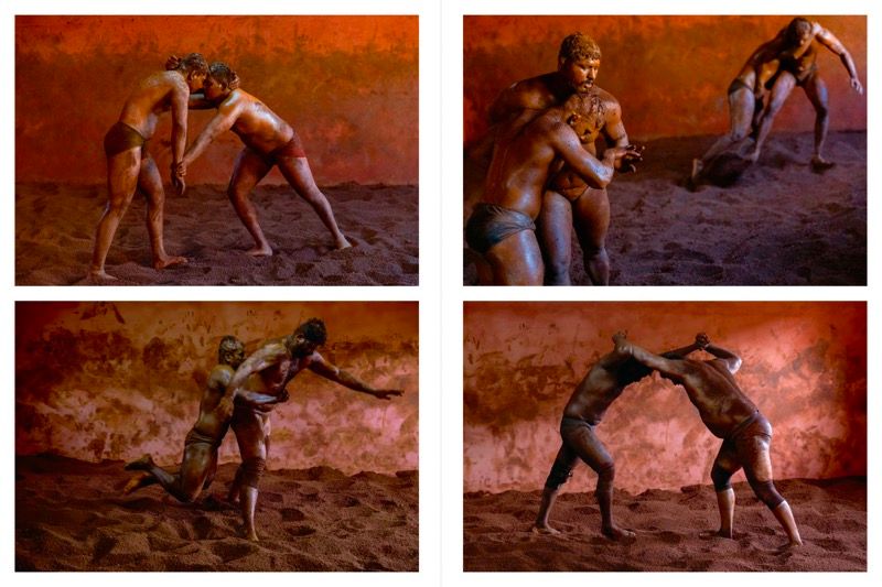 Jejich život se dávno zúžil na zápas. Mimo něj už nestojí na tomto světě o nic. Žádné bohatství, doteky ani city. Nevlastní majetek, jen rohož na spaní, trenýrky, tričko a deku. Ranní trénink začíná kolem čtvrté. Temně rudou hmotou – napůl hlínou a napůl pískem – si zápasníci potírají tělo. Brzy se smísí s potem a oni věří, že je ochrání, že má léčivé účinky. Jsou vzkříšením golemů – siláků stvořených z hlíny. Trénink končí úplným vyčerpáním. Zbytek dne prospí všichni pohromadě na svých rohožích a na jediném ubohém vařiči si ohřívají rýži. A zítra nanovo. Takový je po staletí neměnný svět zápasníků kuští v zapomenutém městě Kólhálpuru na jihozápadě Indie.